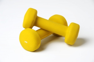 Haltères en métal recouvert de néoprène.